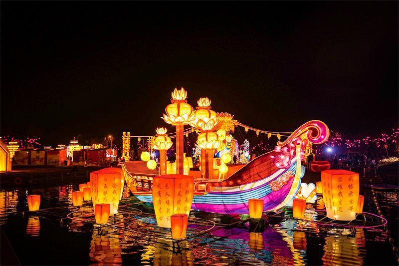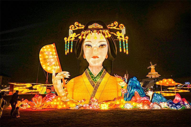 精彩的花灯。华谊小镇供图人民网长沙1月24日电 (记者匡滢)“没想到在长沙还能看到家乡的花灯,年味一下就拉满了。”在长沙新春灯会现场,来自四川的刘女士一边给小孩介绍家乡的花灯,一边拿着手机不停拍照。