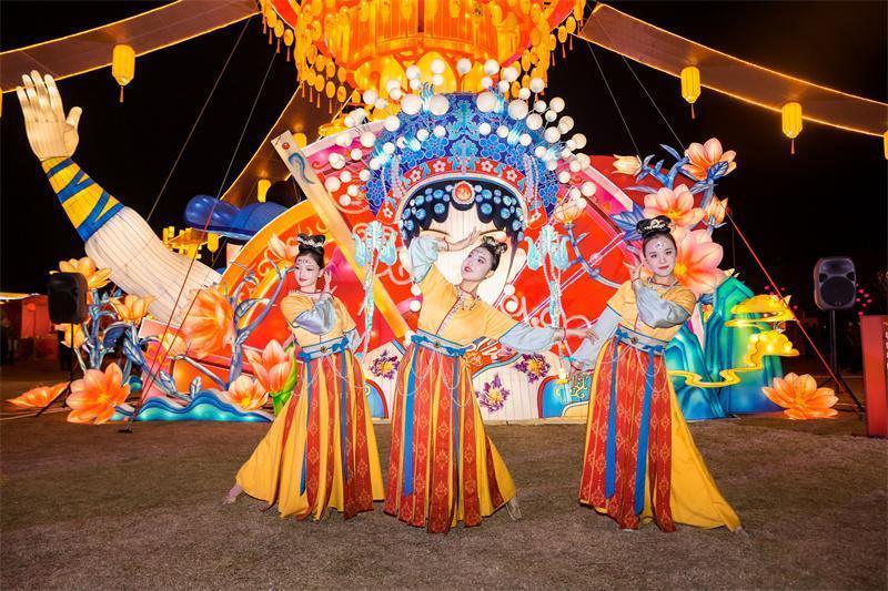 记者在现场看到,设置了新春灯会市集,汇聚中国结绳编织技艺、面塑等非遗技艺展演,让游客在观赏美丽花灯的同时,深度体验非遗的魅力。